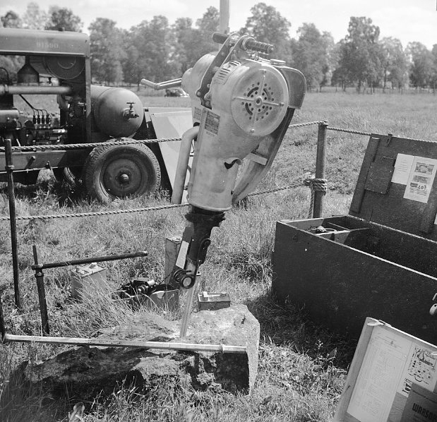 Bergborrmaskin. Utställning av ingenjörsmateriel.