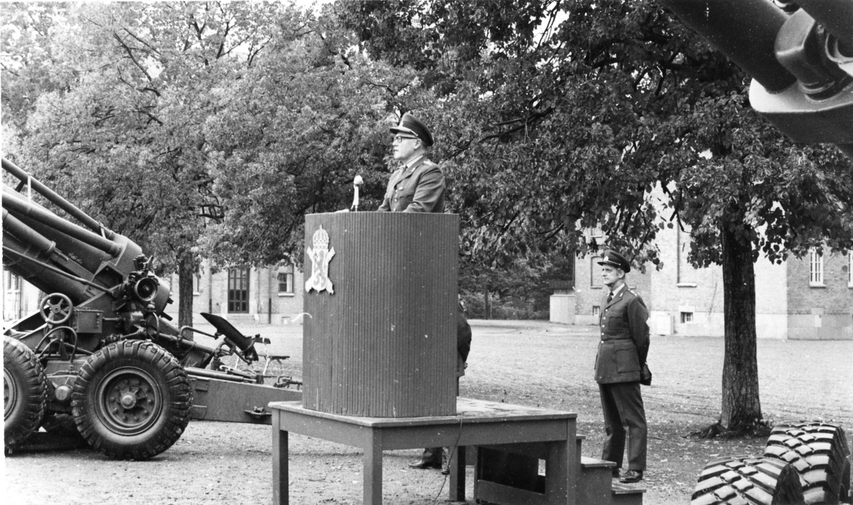 Regementschefen håller tal, A6. Överste Carlsten, major T. Ljungberg.