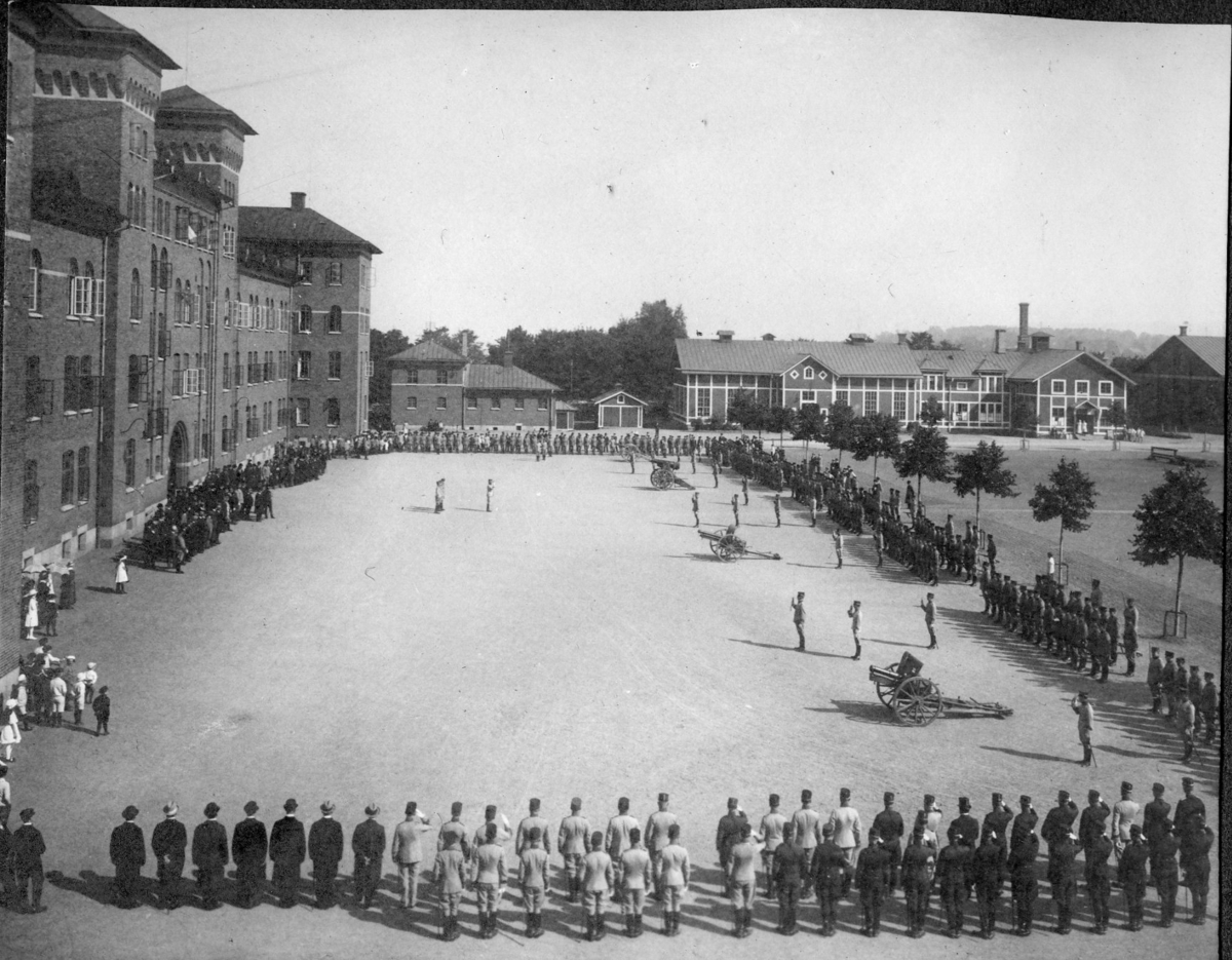 Jubileum 25-års, A 6. Regementet uppställt på kaserngården.