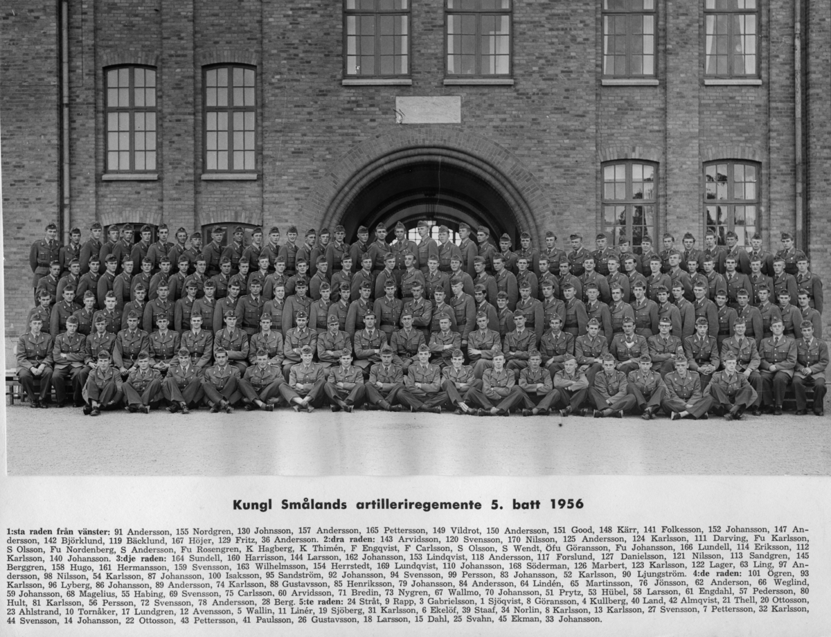 Batterikort, A 6. 5.Batt. Batt.chef kapten Hagberg. I övrigt, se namnlista. Namn vid fotot.