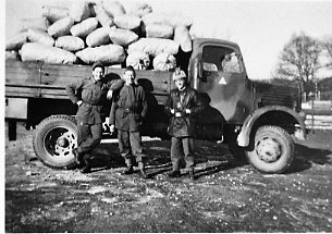 Terrängbil m/1942 M, Klöckner. Till höger Nils Gustavsson. Skåne.