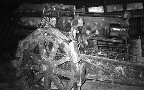 Haubits m/1917. 21 cm, före renovering. Hjul och lavett.