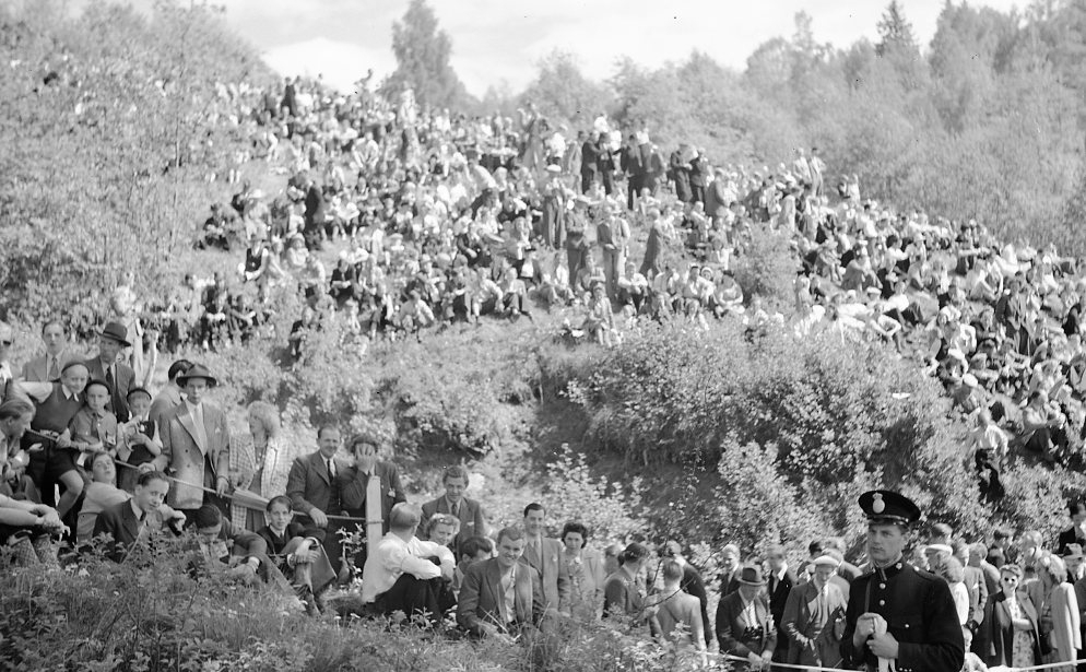 Motorcykeltävling. Publik. Backtävling i Klevaliden, Huskvarna?