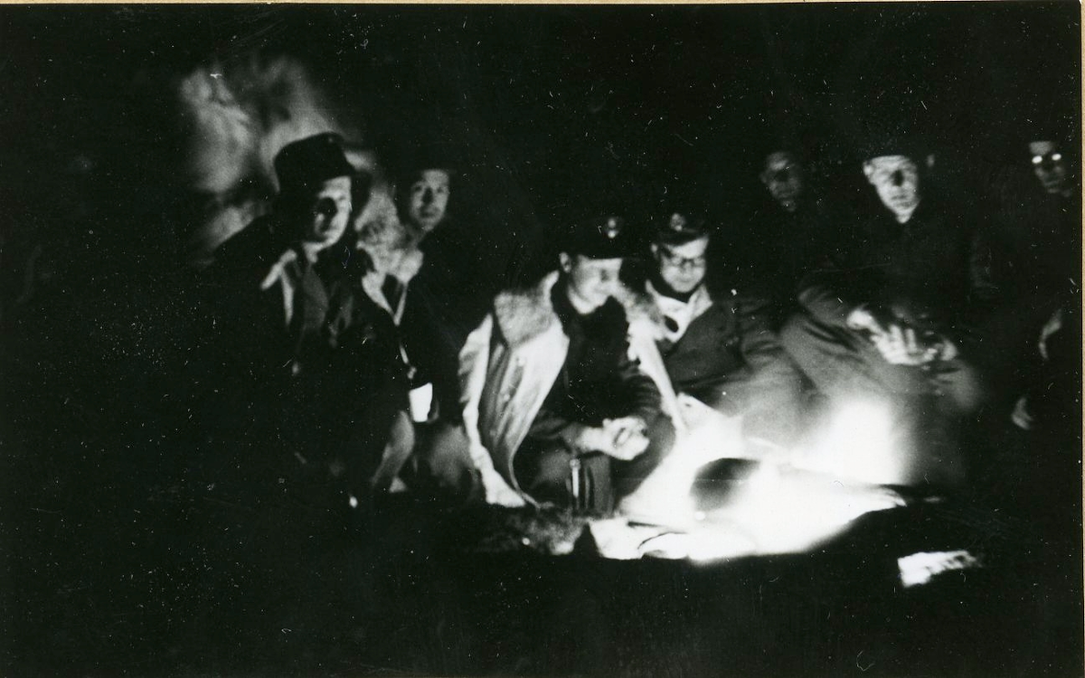 På fältmässigheten bland "bockarna" var det inget att anmärka på. Ett stearinljus var all den belysning som bjöds vid middagen.