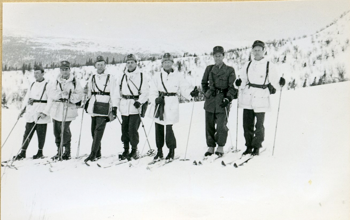 Upp mot Åreskutan: överfurir Johansson, doktor Urwitz, kapten Hörlén, ingenjör Lindegren, överste Dahlgren, fänrik Kågesten, överfurir Westerberg.