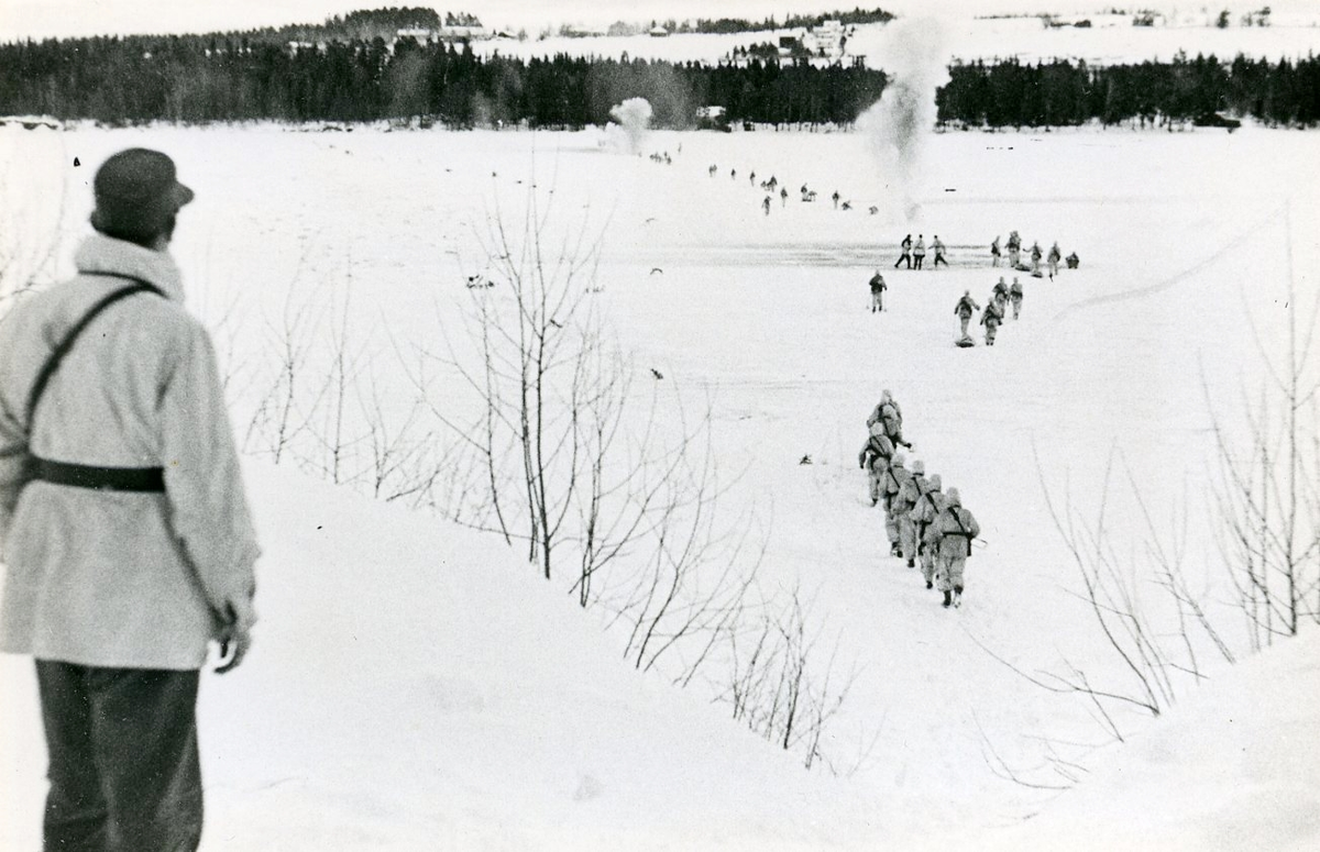Titel: Vinterövning på Frösön. Uppgiften gällde issprängning från Frösön tvärs över sundet.