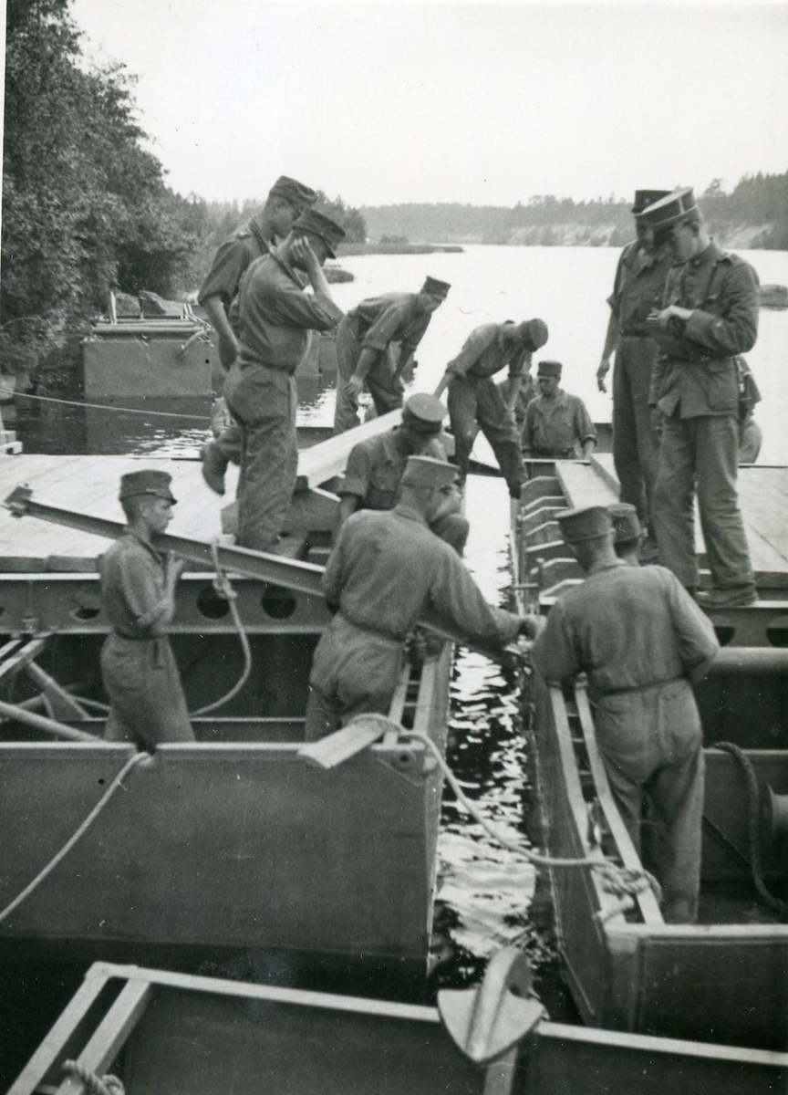 Som korpral på 2.kompaniet, Ing 1, sommaren 1936. Sammanfogning av färja med landspann. Åminne 15 juli 1936.