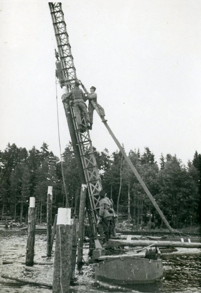 Som korpral på 2.kompaniet, Ing 1, sommaren 1936. Strävpålning med sladdpålkran.