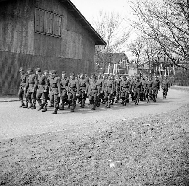 Tropp på väg vid Övningsmaterielförrådet.