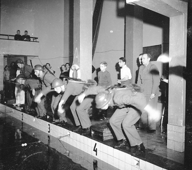Klädsim i varmbadhuset. OBS! Hjälmen.