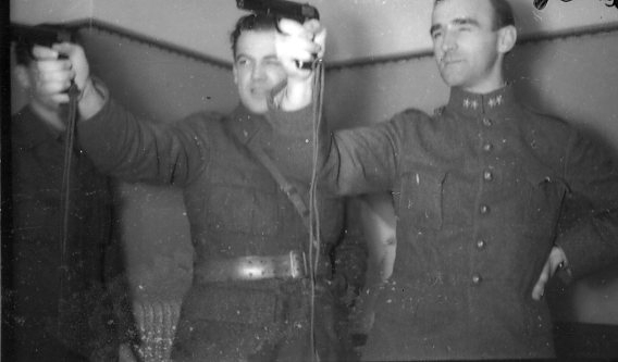 Gadd, löjnant, A 6, siktar med pistol m/1907.