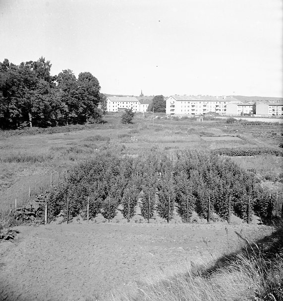 Bostadsomåde på öster i Jönköping. Tornet på Östra skolan i bakgrunden.