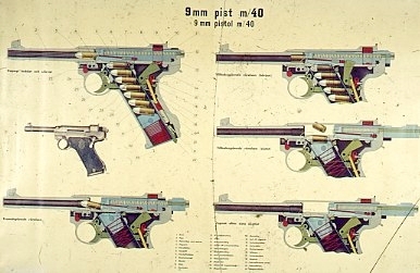 Titel: Pistol m/1940. 9 mm. Ljusbild av plansch.