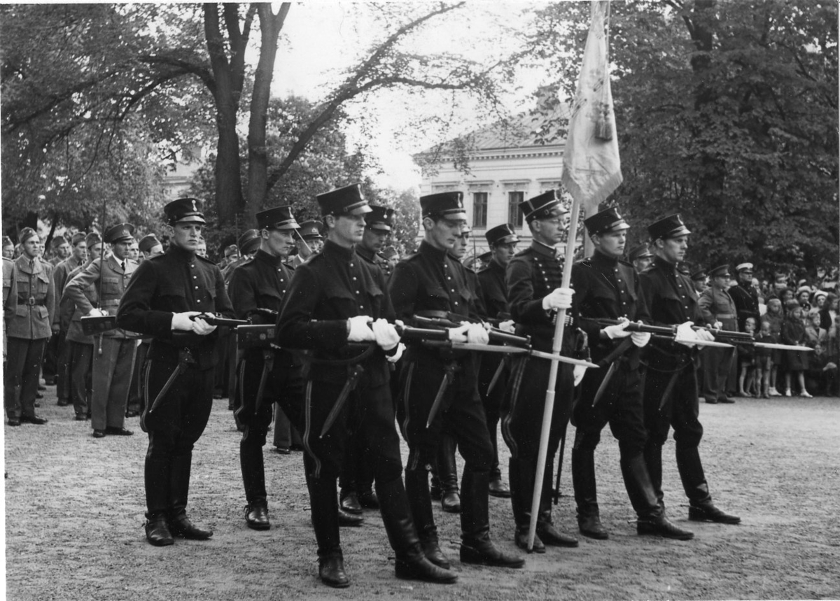 Jubileum 50 års, A6. Standarvakten i Rådhusparken. Namn se notering.