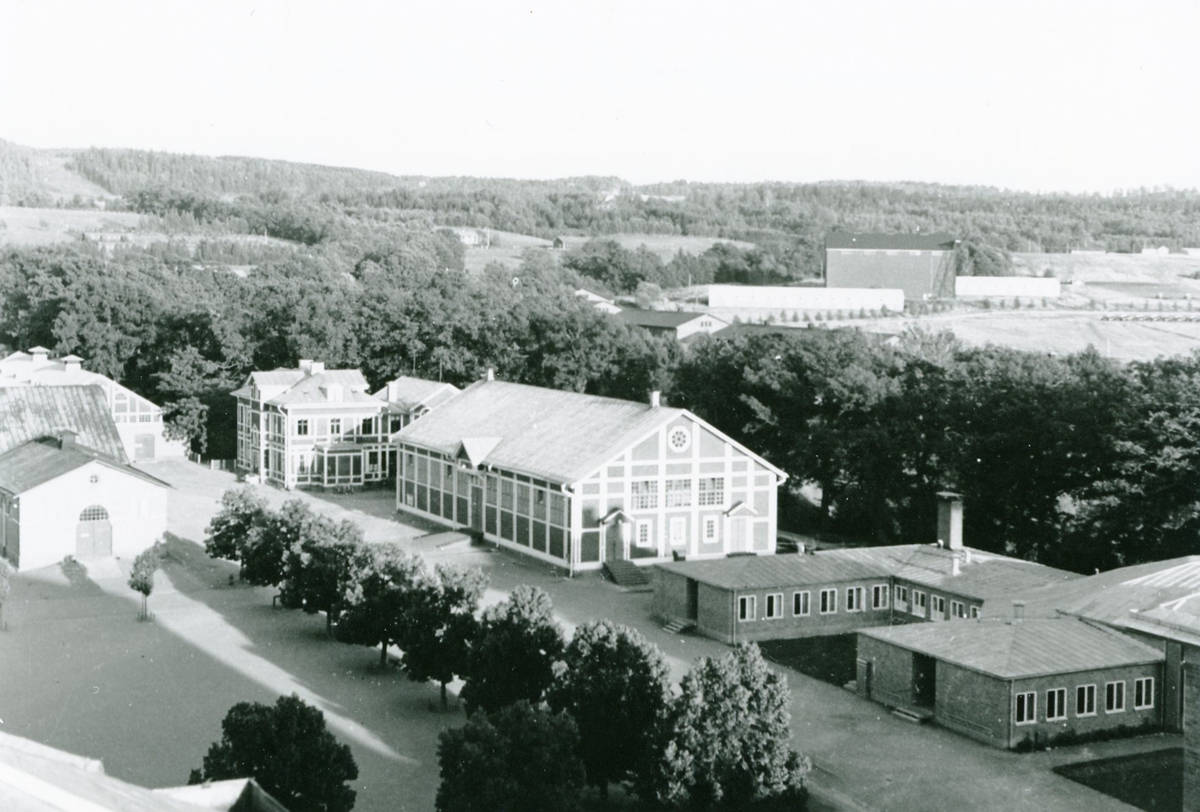 Gymnastiksal och nya marketenteriet. Foto från kaserntaket, A6.