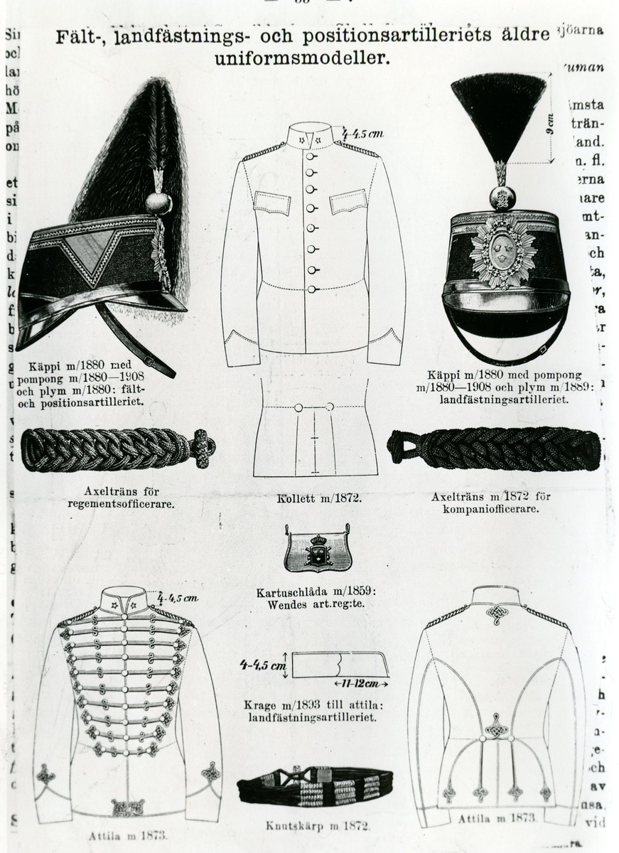 Uniformsdetaljer. Fält- och positionsartilleriets, äldre modeller.