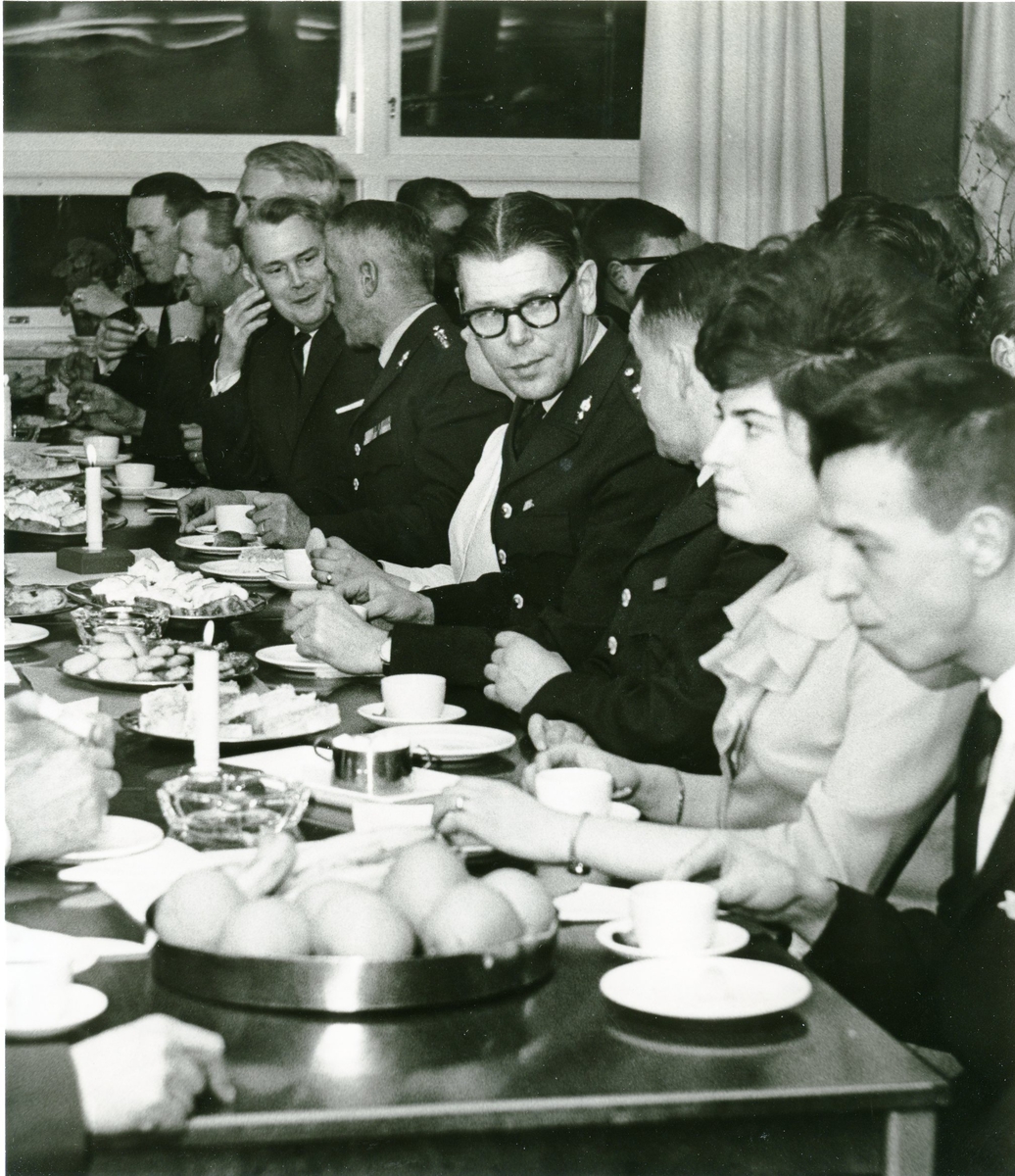 Avslutningsfest i matsalen, A6. Major Ahlström, överste Lundqvist.