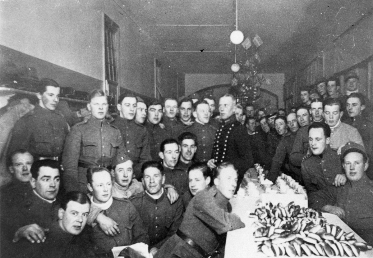 Julfirande i batterikorridoren, 2.Batt. A 6. Namn se notering.