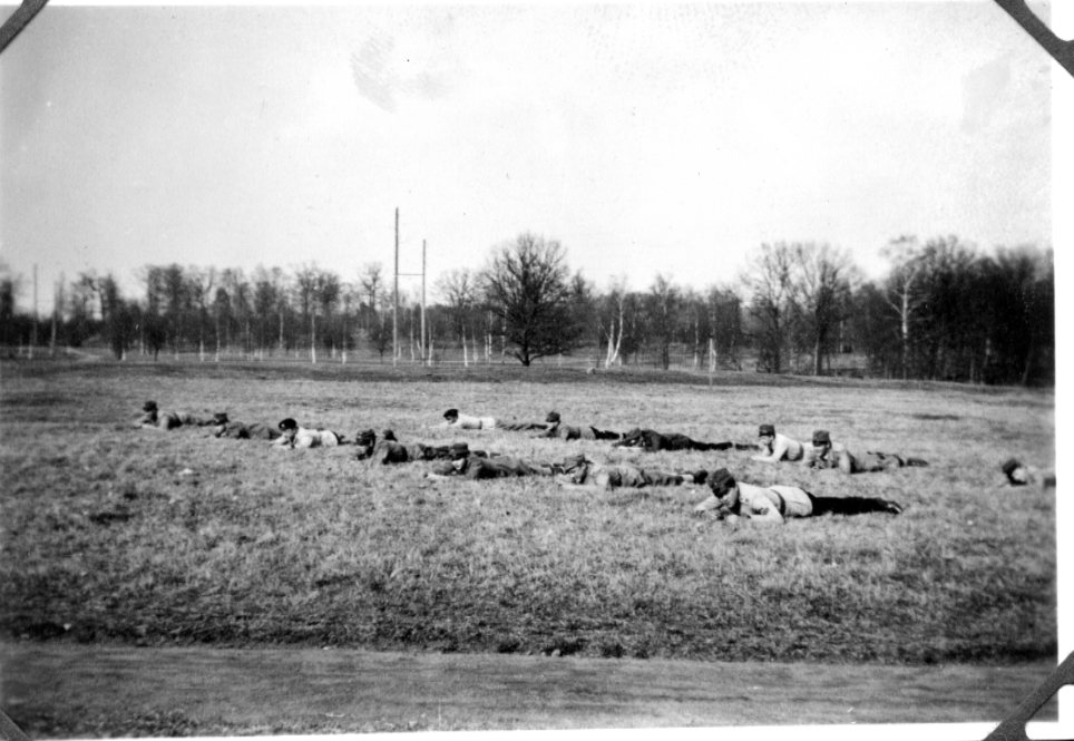 Landstormspojkar, liggande på ett fält. Eksjö.