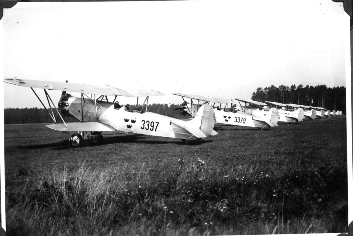 Flygplan, uppställda på marken (Jagare). Karlsborg.