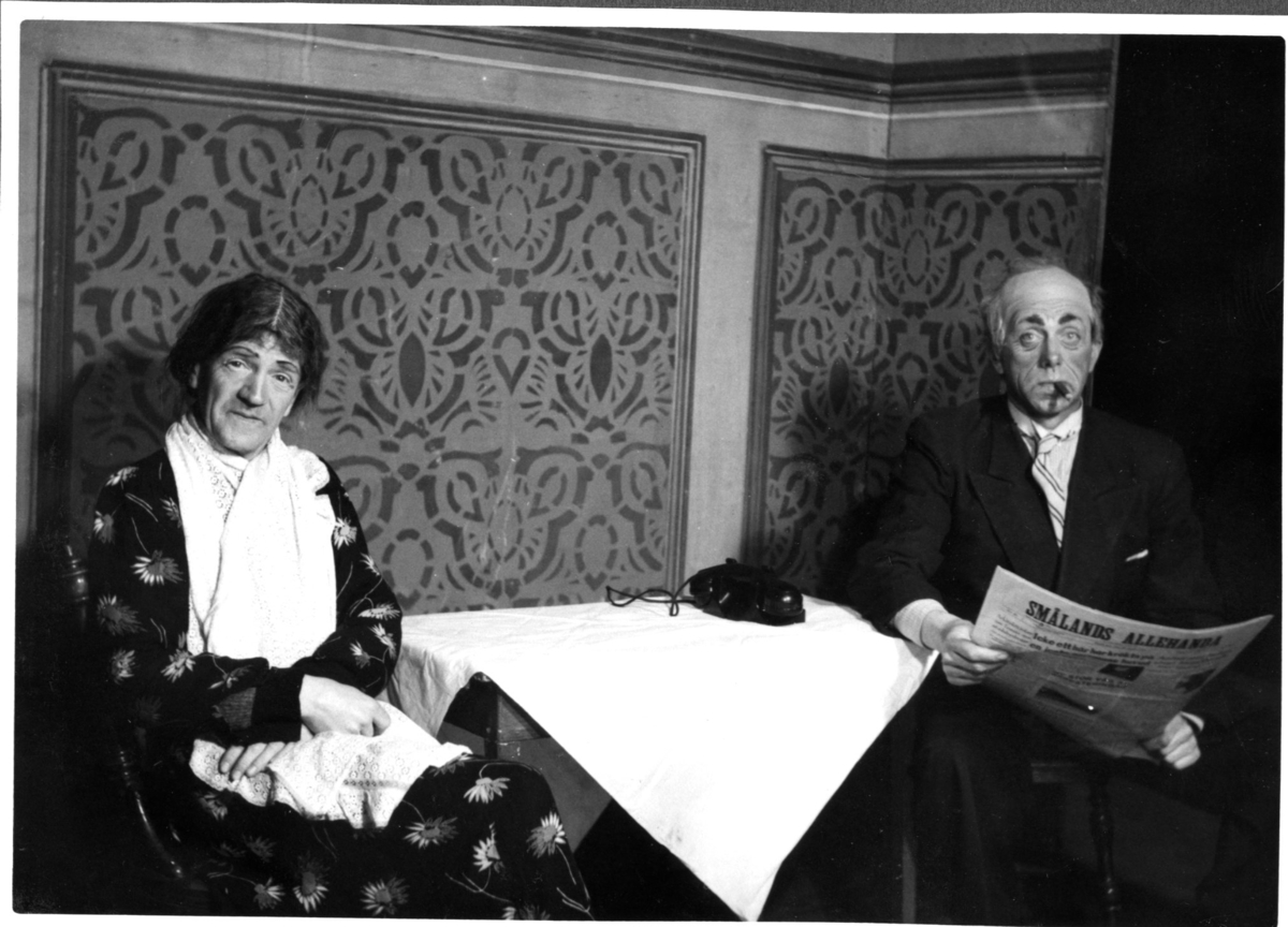 Revy på A 6. Två man, varav en utklädd till kvinna.