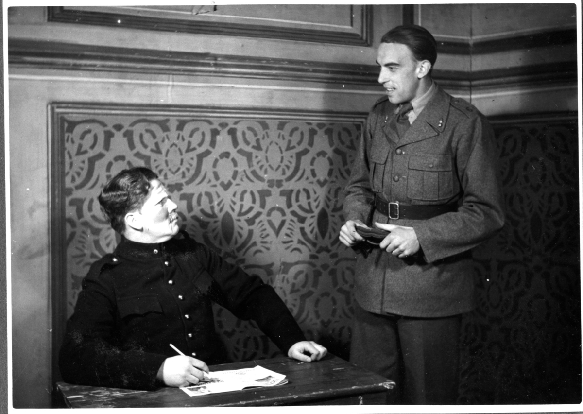 Titel: Revy på A 6. Två man i uniform.
