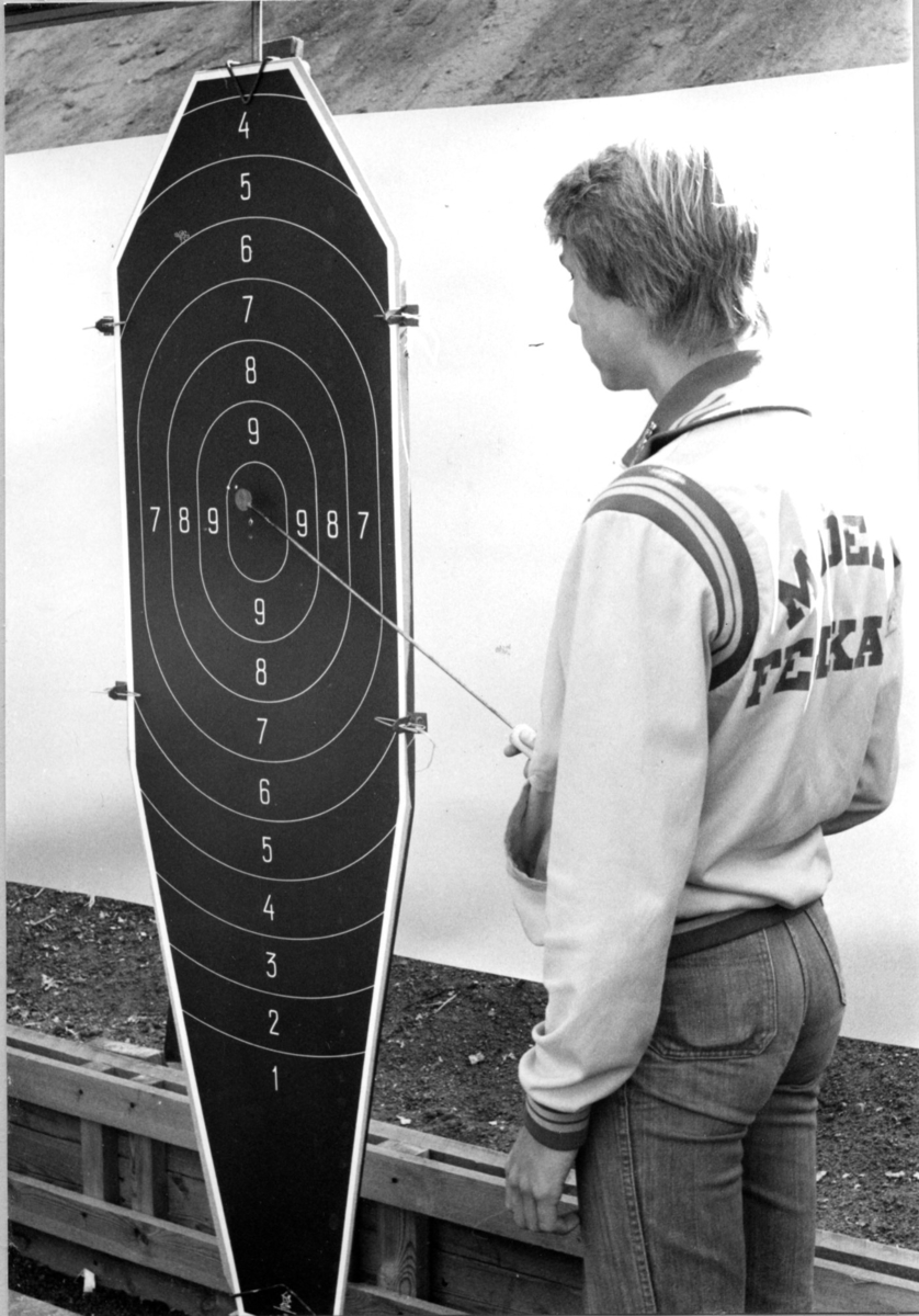 Modern Femkamp, VM, Jönköping. Vid skytte-måltavla.