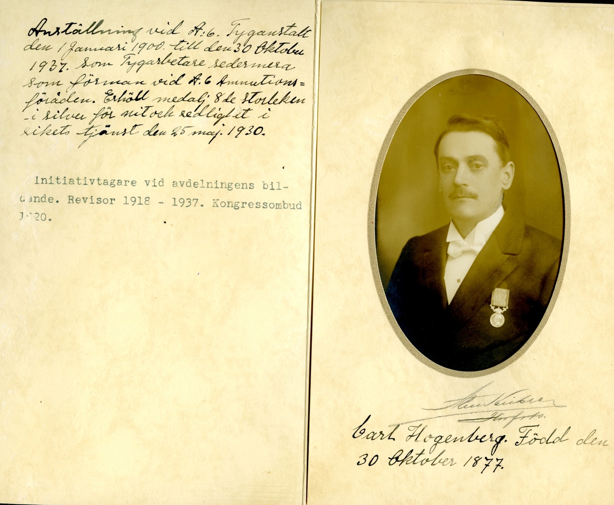 Hogenberg, Carl. A 6. FCPF avd 2, Jkpg. Född 1877-10-30.