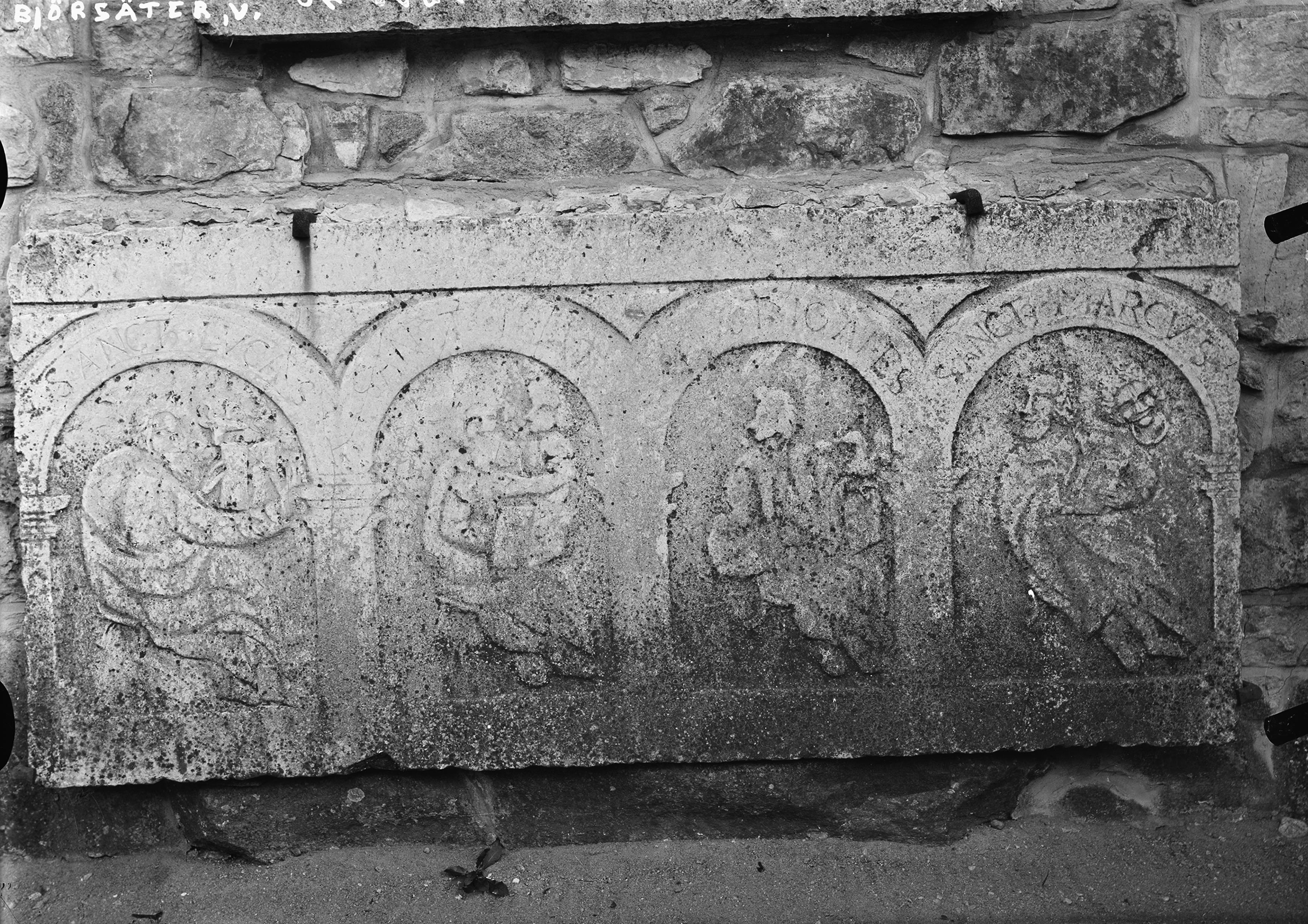 Stenskulptur, relief föreställande evangelisterna, 1500-1600-talet. Snabbinv.