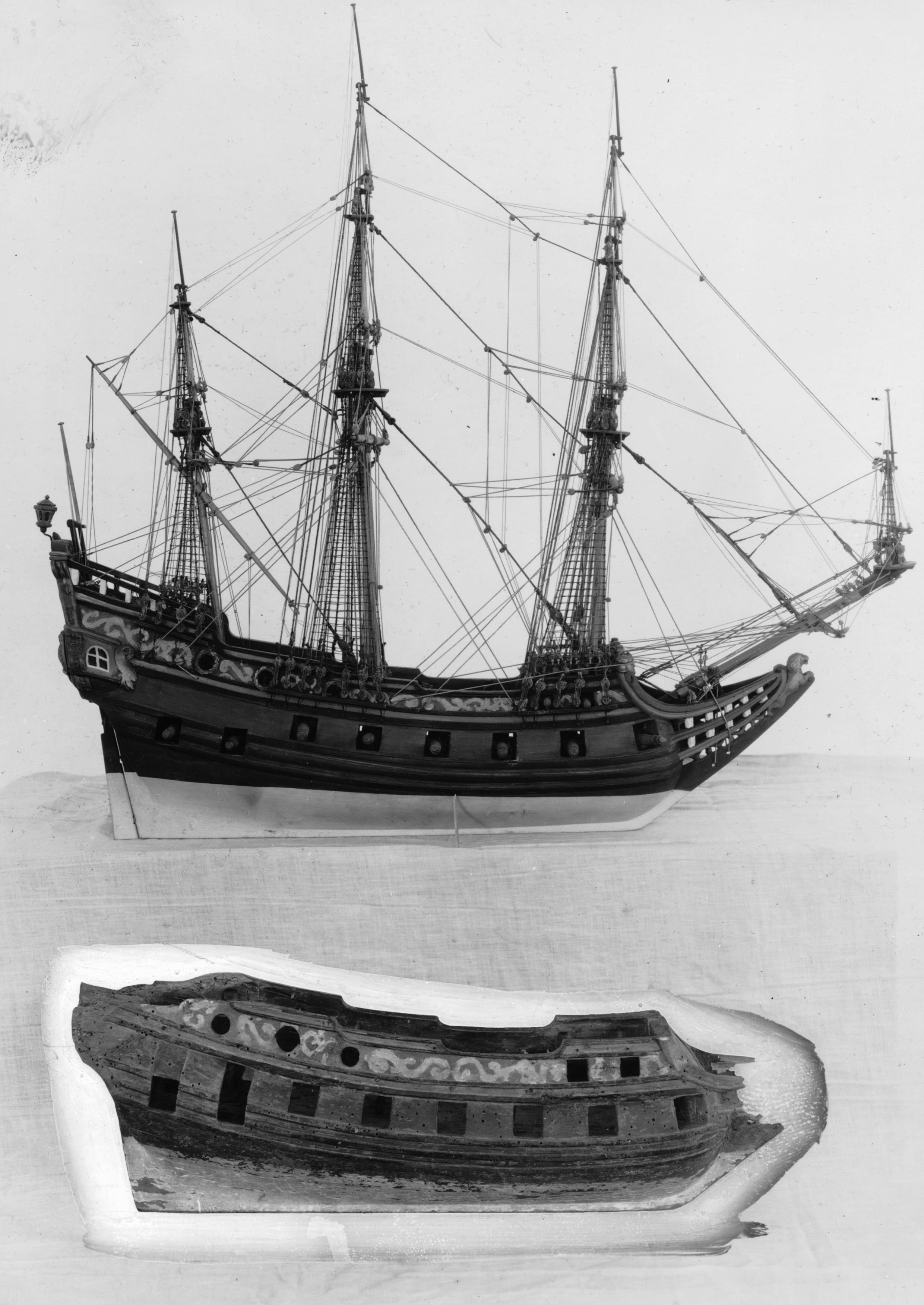 Modell av mindre fregatt.