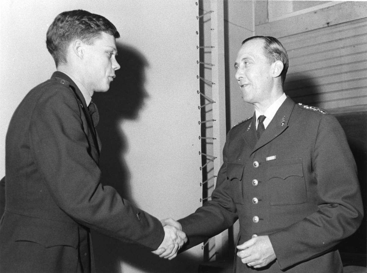 Priutdelning, A6. Överste Teqmo samt värnpliktiga.