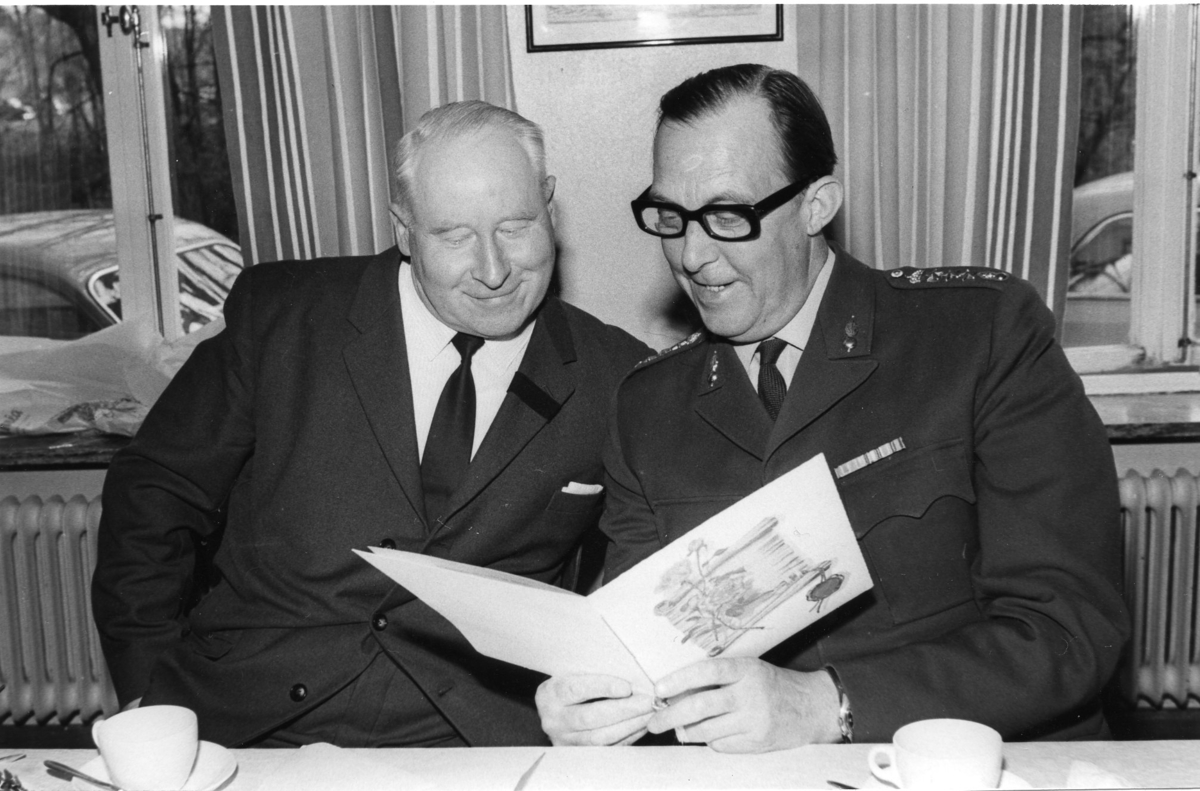Avtackning av förrådsarbetare Erik Johansson, A6. Överste Tegmo.