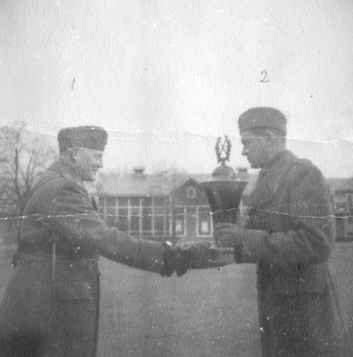 Prisutdelning, A6. Överste Kring, srgeant Hallberg.