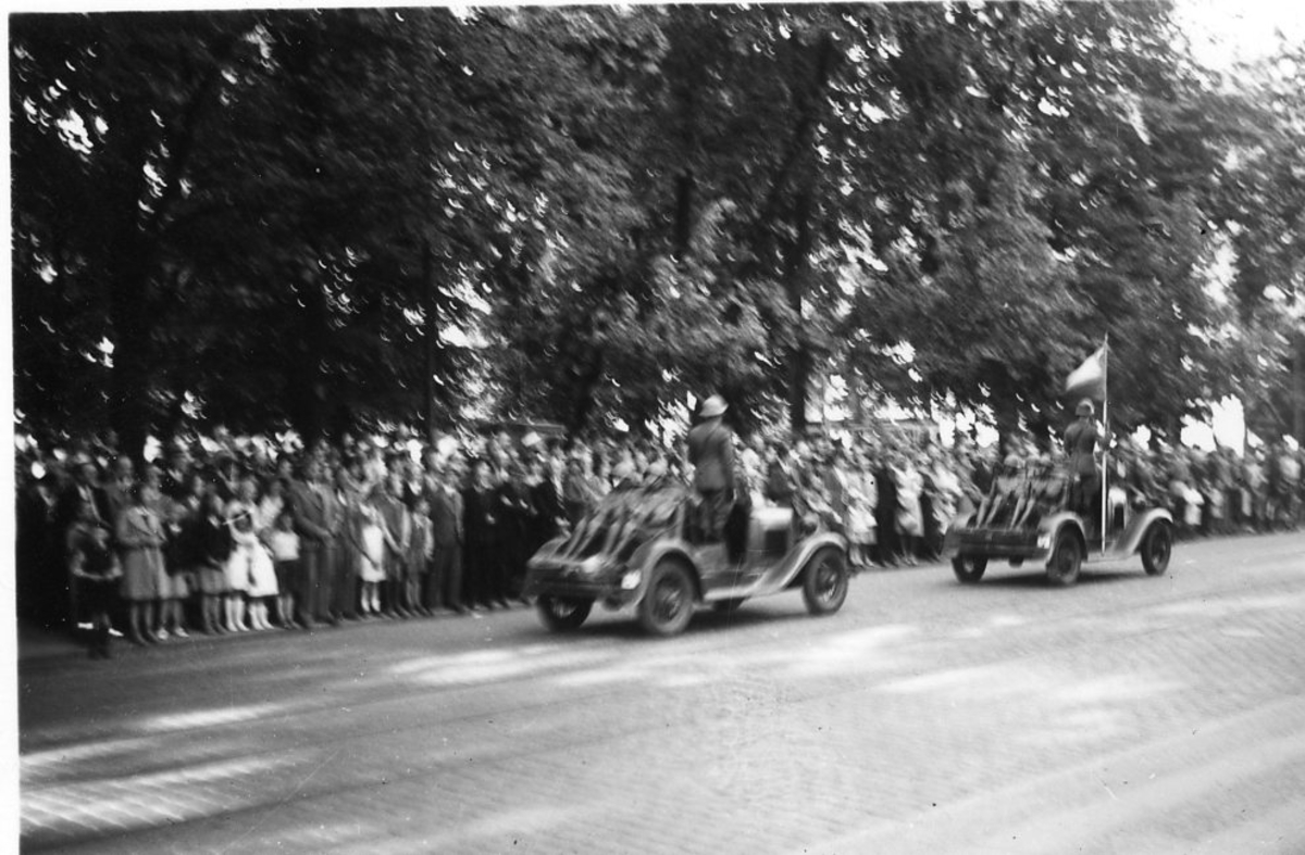 Rådhusparken, Jönköping. Förbimarsch, 2 st rekognoseringsbilar, A6.
