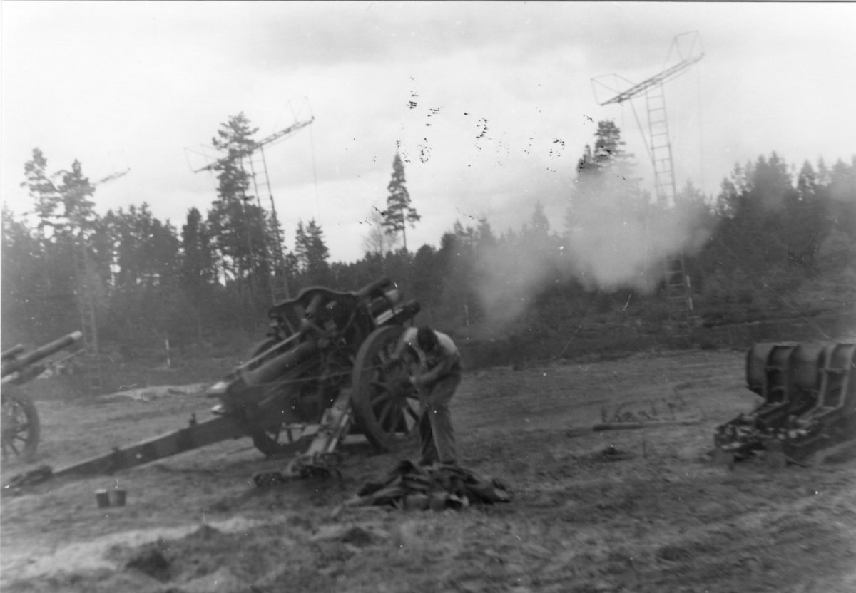 Haubits m/1939. 10,5 cm. Grundvärdesskjutningar, Skillingaryd.
