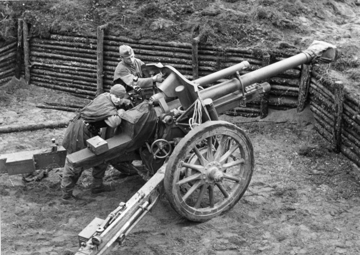 Haubits m/1939. 10,5 cm. Pjäsgrupp. Furir Björn Stenberg.