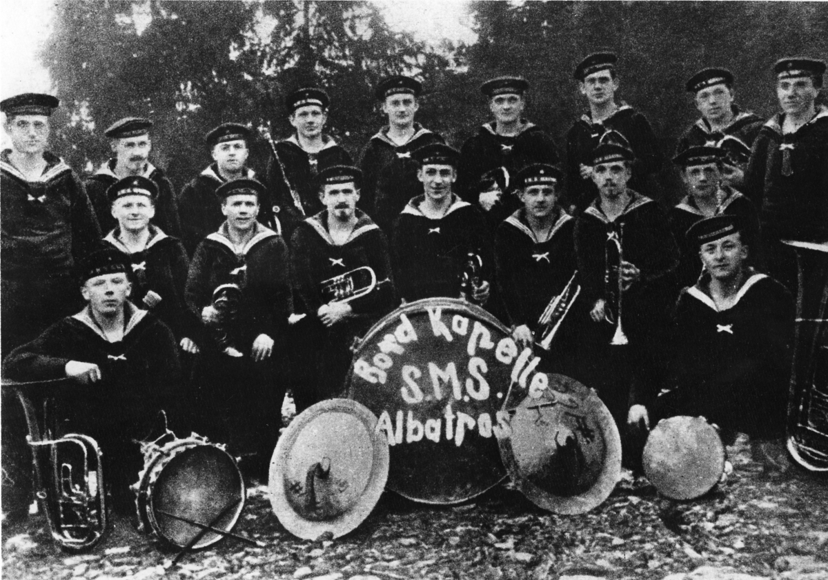 Titel: Musikkår. Tyska minfartyget Albatross musikkår.