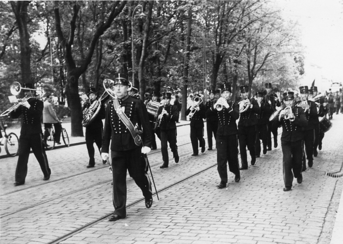 Musikkåren, A 6. På marsch, Västra Storg. genom Rådhusparken, Jkpg.
