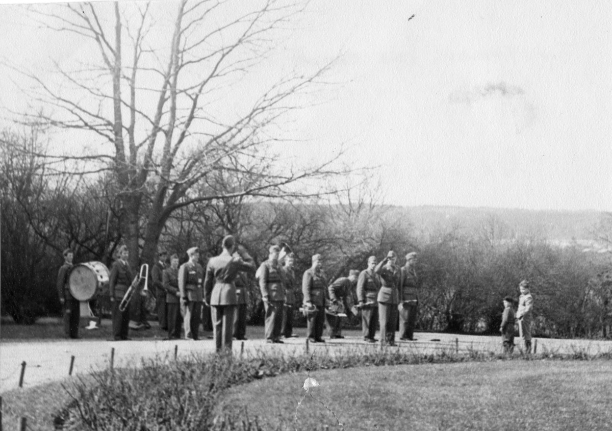 Musikkåren, A 6. Överste Thorson tar emot, utanför valvet.