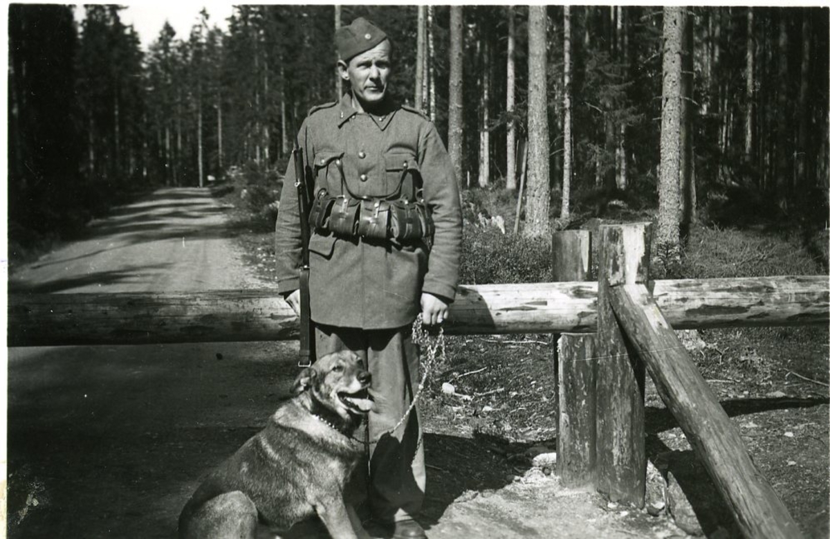 Vaktpost vid vägbom.
