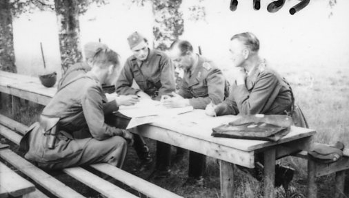 Thorson, överste, A 6 inspekterar kårmätbatteriet.