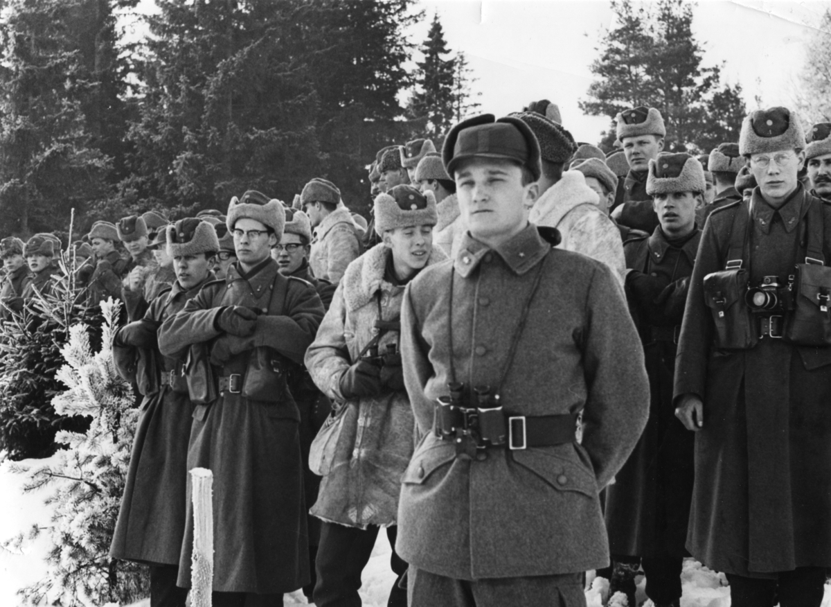 Värnpliktiga åskådare, i Skillingaryd. Fänrik Rune Hall.