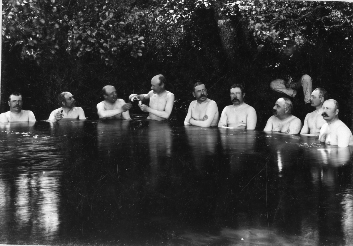 Officersbadet i Lagan, Skillingaryd. Punschdrickning.
