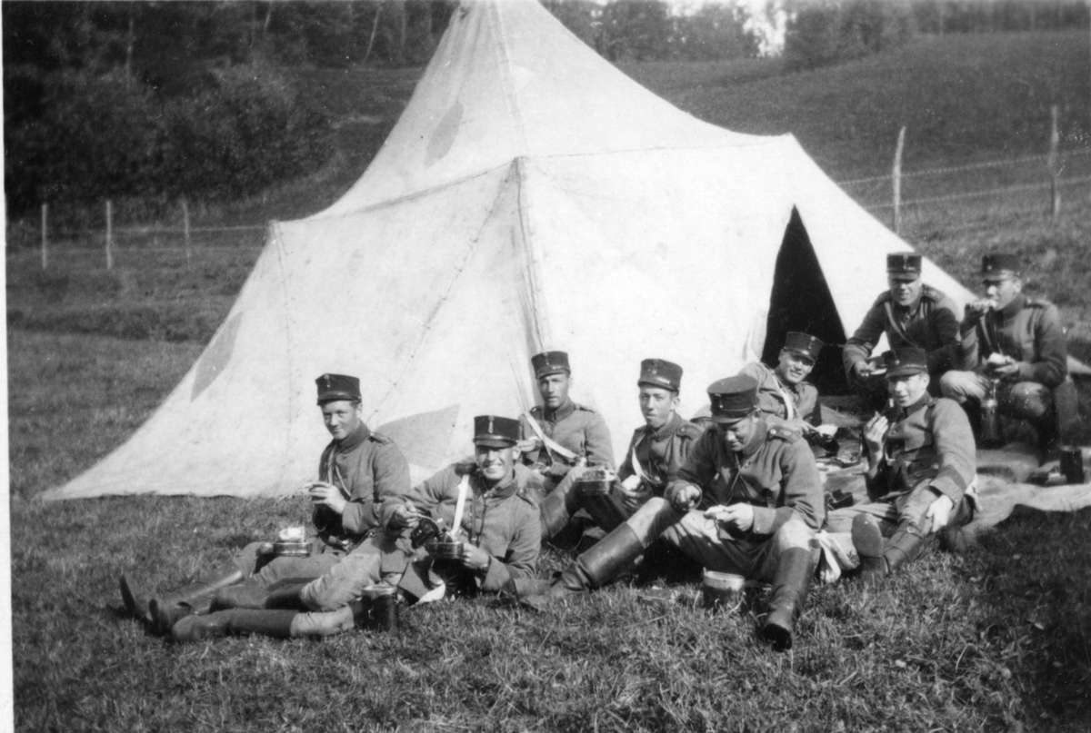 Bivack, 1.Batt. A 6 (mätbatt). Knäppedukstält.