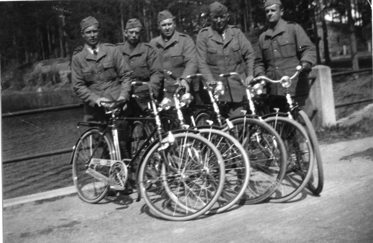 Gruppbild (5 man med cyklar). I 12, Eksjö.