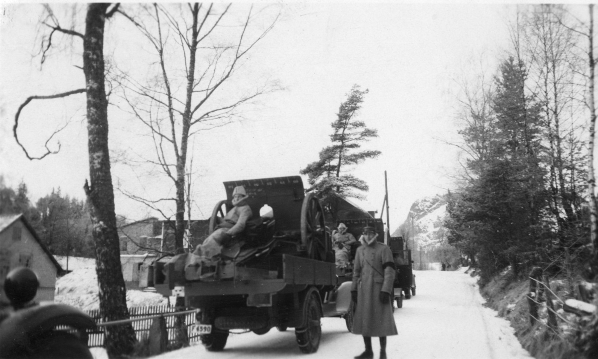 Lastbil, med upplastad kanon m/1902, 7,5 cm, A 6. Vinterövning.