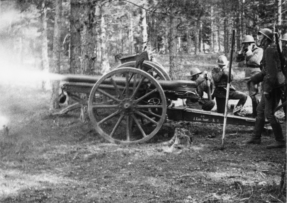Titel: Kanon m/1902. 7.5 cm. Eldgivning.