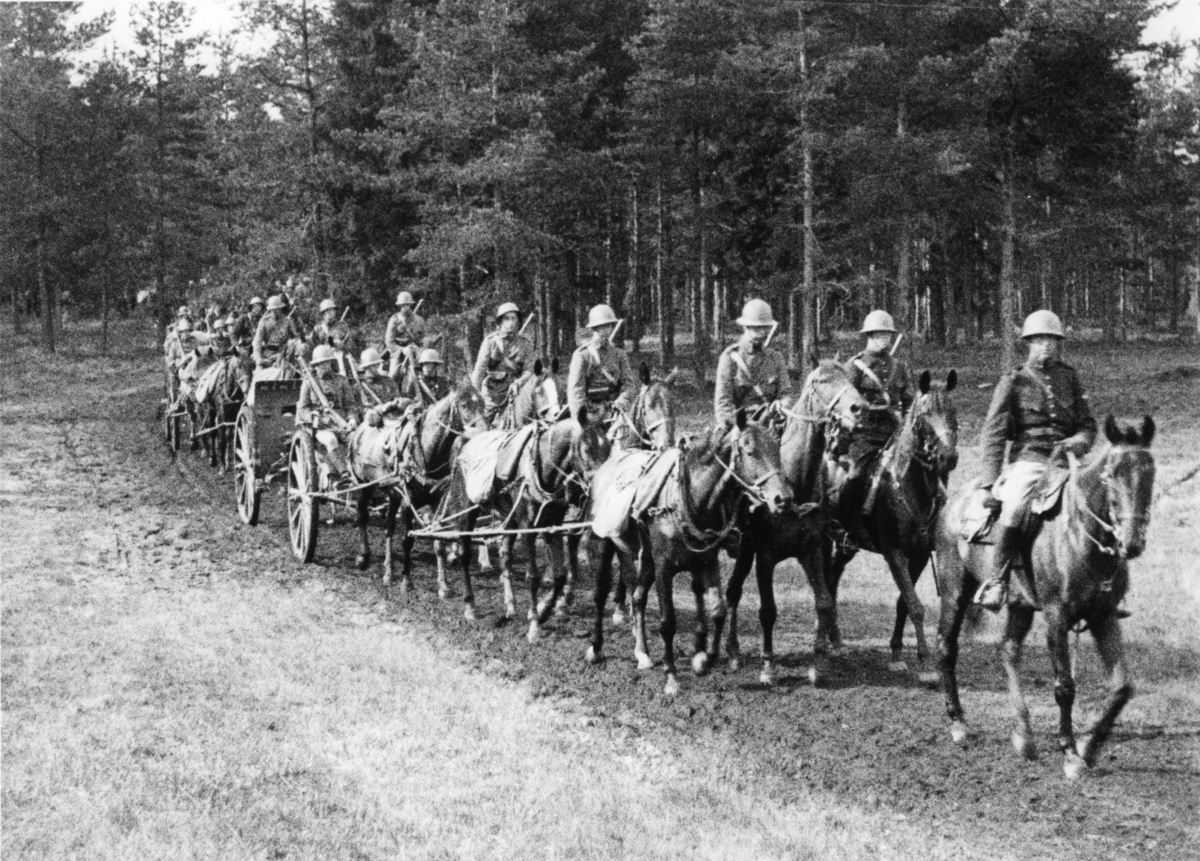 Kanon m/1902. 7,5 cm. Under marsch i Skillingaryd.