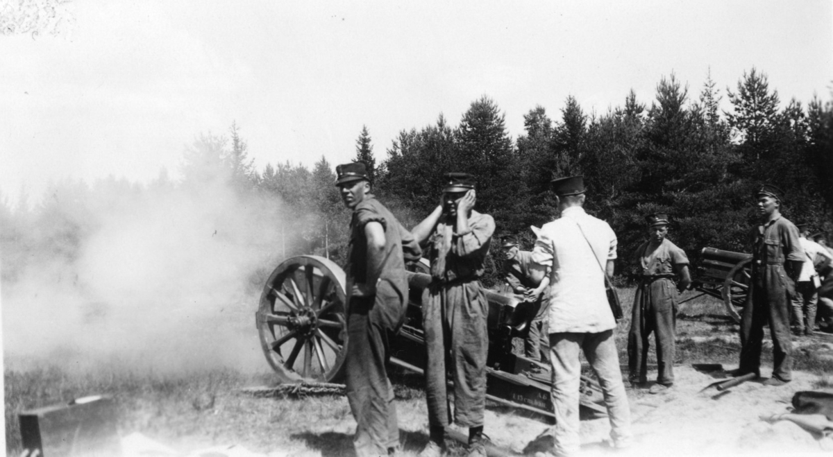 Haubits m/1906. 15 cm, positions. Eldgivning.