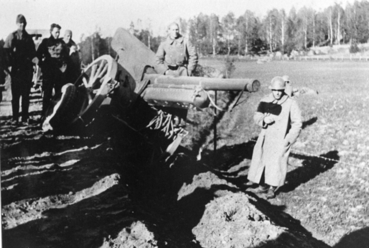 Kanon m/1917. 10,5 cm. Pjäs i diket.